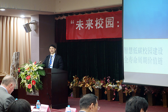 如何建設智慧低碳校園,周蕾博士有著自己的看法。他坦言校園建筑的多樣化、管理的復雜性以及社會關注度決定了校園節能減排解決方案是個系統化的綜合方案。通過合同能源管理機制,加強對新能源的利用是對現有校區的改造方式。對于新校園建設則需要充分利用現有的土地資源與自然景觀進行規劃建設,大力推廣綠色建材、新型材料,同時實現項目從規劃、設計到施工的運行維護一體化的網絡管理平臺的建設,校園綜合能源檢測平臺系統的建立對整個校園的碳排放量進行統計,同時利用大數據原理建立高效碳排放信息庫。