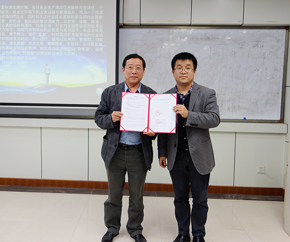 2014年11月14日下午,公司董事長周和生應重慶大學邀請,為重慶大學建設管理與房地產學院學生及相關部門工作人員作了題為“建設項目全過程投資管理及審計系統介紹”的學術報告。并向學院捐贈“建設項目全過程投資管理與審計系統”軟件,大力支持學校教學工作。竹隰生院長代表學院出席此次捐贈儀式。